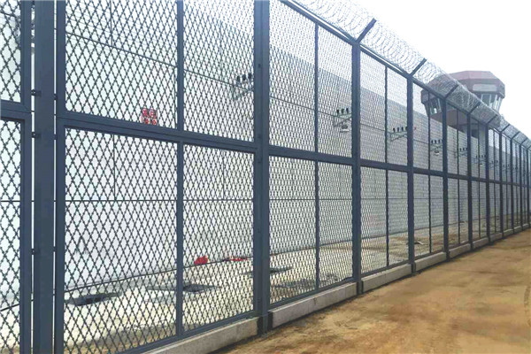 2、監獄警戒區隔離網墻設計要求整體連貫一致,框網方正,對角線誤差不大于2cm。 隔離網網頁安裝離地距離5-8cm,框網與立柱采用螺栓固定邊耳式連接網頁每邊與立柱連接點不少于六處。